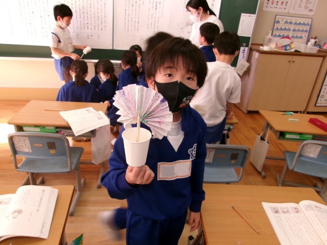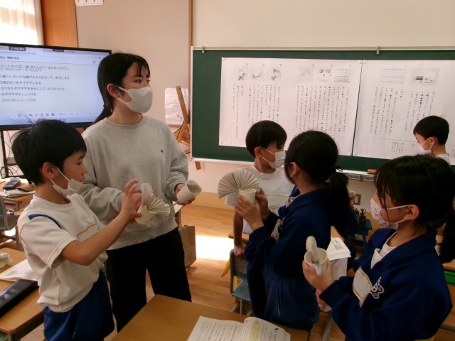 作っていたのは「紙コップ花火」です。国語の教科書に、作り方の説明が載っています。