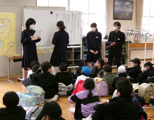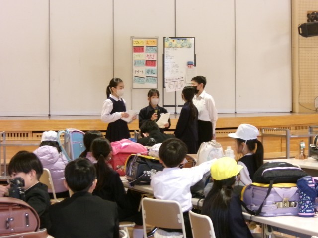 本日、6年生は出町中学校に見学に行きました。最初に、中学校の校長先生から校訓である「天資養活 自他共栄」習い、4か月後には自分たちも中学生になるという実感をもちました。理科・体育・数学等、様々な教科の授業を見学したり、質問コーナーでは不安に思っていることや疑問に感じていることをたくさん質問したりしました。最初は、不安でいっぱいの子供たちでしたが、見学が終わり小学校に帰ってくると、「中学校楽しみ」という声があちらこちらで聞こえてきました。卒業まで残り4か月。子供たちと1日1日を大切にして過ごしていきたいと思います。