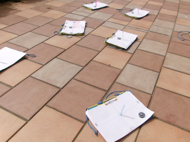 どうやら、3年生が、時間と共に影の向きが変わる理由を調べているようです。