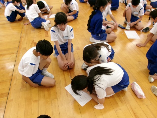 「挨拶」をテーマとして、5年生と6年生の混合グループで高学年道徳を行いました。