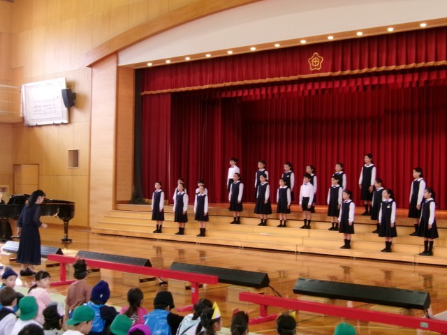 本日行われた学習発表会予行では、管楽器クラブ、合唱クラブ、1年生から6年生の発表を鑑賞しました。