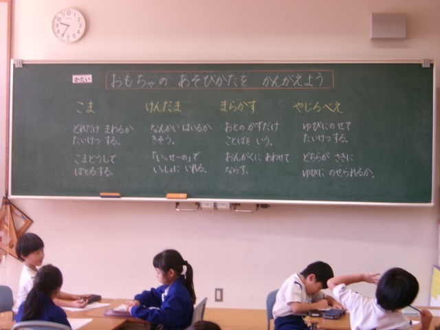 おもちゃは、「こま」「けんだま」「まらかす」「やじろべえ」の4種類です。