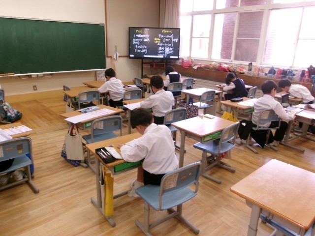 2年生が、教室で静かに学習をしていましたが、なんだか人数が少ないような気がします。