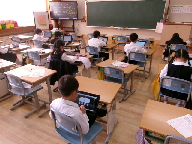 教室で学習しているのは、明日町探検に行く予定の子供たちです。