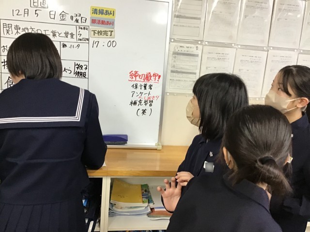 本日、6年生は出町中学校に見学に行きました。最初に、中学校の校長先生から校訓である「天資養活 自他共栄」習い、4か月後には自分たちも中学生になるという実感をもちました。理科・体育・数学等、様々な教科の授業を見学したり、質問コーナーでは不安に思っていることや疑問に感じていることをたくさん質問したりしました。最初は、不安でいっぱいの子供たちでしたが、見学が終わり小学校に帰ってくると、「中学校楽しみ」という声があちらこちらで聞こえてきました。卒業まで残り4か月。子供たちと1日1日を大切にして過ごしていきたいと思います。