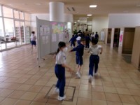 1年生の体育科では、なわとびを使った学習をしています。自分で決めためあてに向かって、前回しや後ろ回し、駆け足跳び等の練習をしました。今日配布したなわとびカードは跳んだ回数によってマスが塗れます。中にはマスを一列塗り切ったりいろんな技に挑戦したりする姿が見られました。授業の時間だけでなく休み時間にも楽しんで跳ぶ子供が多くいます。「二重跳びができるようになったよ」「前回しの回数で勝負しよう」など、友達や教師も誘ってどんどん上達していく子供たちの成長が楽しみです。