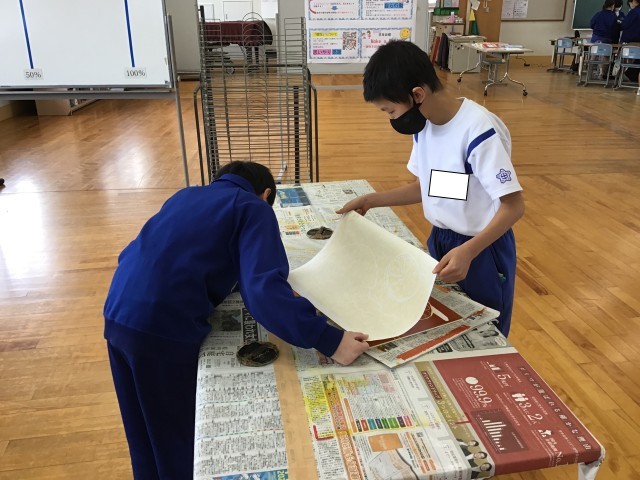 5年生は図工で版画の学習をしています。