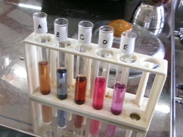 「えっ!?紫がピンクになった!あっちの水溶液は黄色になってる!おもしろ~い」
