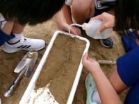 5年生の理科です。今日は、アサガオとヘチマの花粉を観察しました。レンズをのぞき込み、花粉が見えると、「アサガオの花粉のまわりには、ウニのような突起がある」とか「ヘチマの花粉は、何かの種のようだ」などと、つぶやきながら観察していました。見た後は、記録用紙にその様子を丁寧に記録しました。