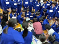 5年生は「感情、気持ちを体で表そう」をテーマに、アメリカオレゴン州からの講師の方とダンスを通じた交流を行いました。ダンスを鑑賞したり、羊やゴリラ等の動物になりきり体を動かしたりしました。子供たちは音楽に合わせて気持ちを表現する楽しさや仲間と協力し体を動かす面白さを感じていました。