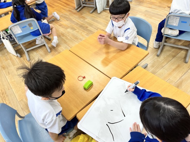 1年生は、先日行われた年長さんとの交流会を振り返っています。