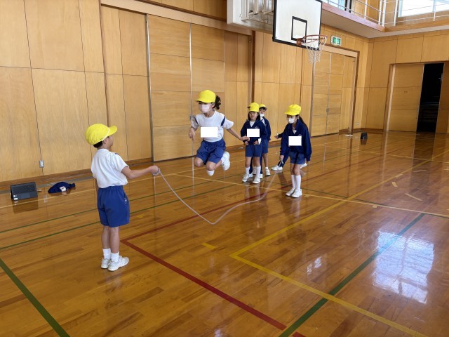 2年生は今、体育の時間に8の字跳びに挑戦中です。
