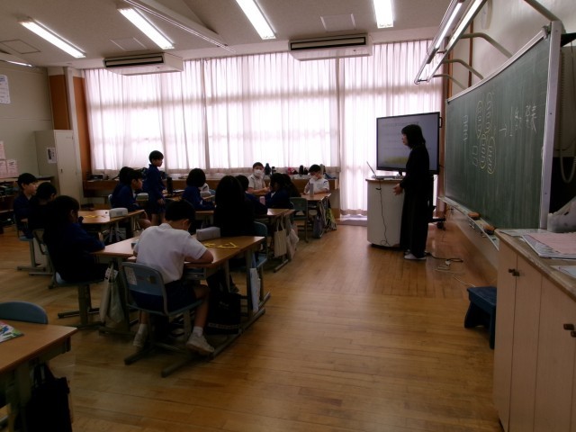 4年生は、市の運動指導の先生を招いて、鉄棒を教えていただきました。逆上がりから、連続後方回転、ひざかけ後ろ回りなど、どんどん動きを発展させながら技を高める方法を教わりました。また、補助具やタオルを使って、逆上がりの練習をする方法も教わりました。手ごたえを感じながら練習をすることができました。