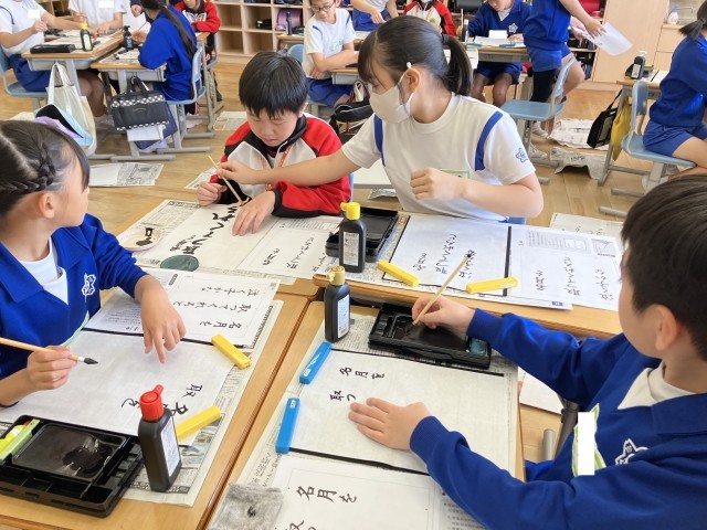 そのあとは、日本の学習に親しみました。国語科や習字の学習に取り組みました。