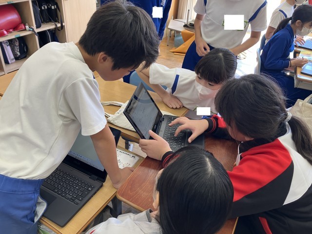 資料集などで調べて自分の考えをもち、友達と交流します。