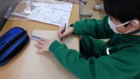 理科の時間です。授業の初めに「電気が流れる道のことを・・・?」「回路!」と確認して、これまでの学習をプリントで確かめました。回路がかかれた図をよく見て、問題に取り組みました。