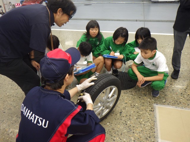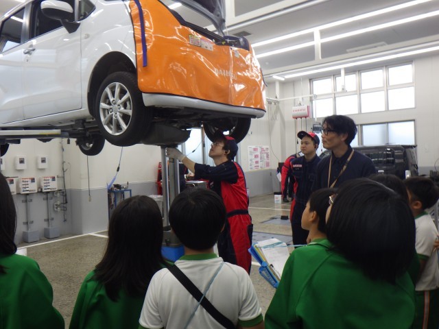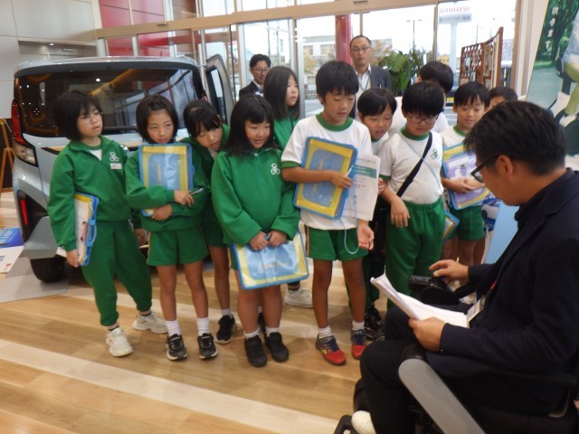 4年生 ダイハツ砺波店で車のリサイクルについて見学 10/16