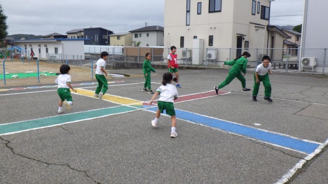 ドッジボールやおにごっこ等で体を動かしたり、折り紙で会話を弾ませたりしながら、仲を深めました。