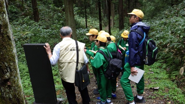 「曲輪の会」の方々に、戦国時代や江戸時代に増山城で起こった出来事や増山城の特徴を詳しく説明していただきました。