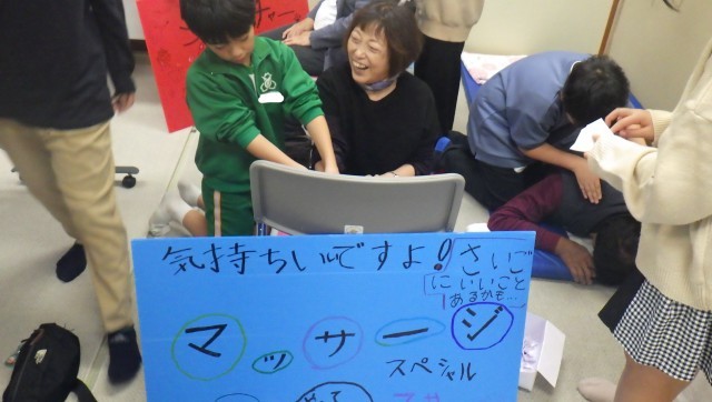 地域の公民館祭りに合わせて、子どもたちは地域の方々と交流する会を開きました。「地域の皆さんに元気になってほしい」という思いをもとに、さまざまな活動に挑戦しました。脳トレで頭を使ったり、マッサージで体をほぐしたり、球投げやジェスチャーゲームで体を動かしたりするなど、地域の方々と楽しく交流することができました。どの活動も子どもたちは自分たちで考え、工夫しながら一生懸命に取り組みました。参加した地域の方々も笑顔で応えてくださり、心温まる交流の時間となりました。