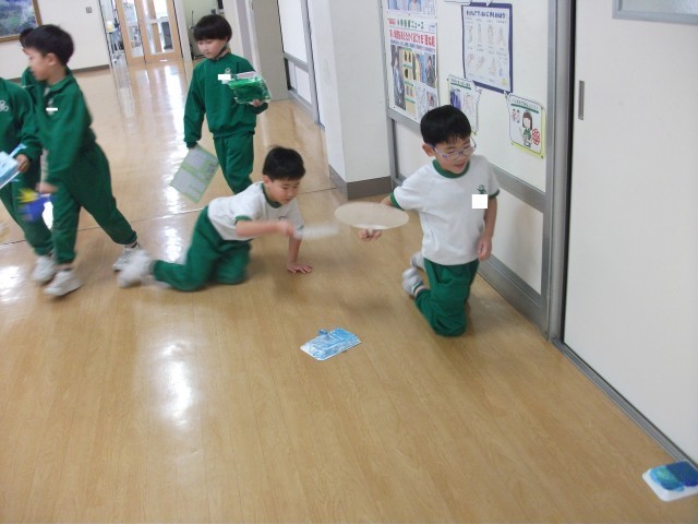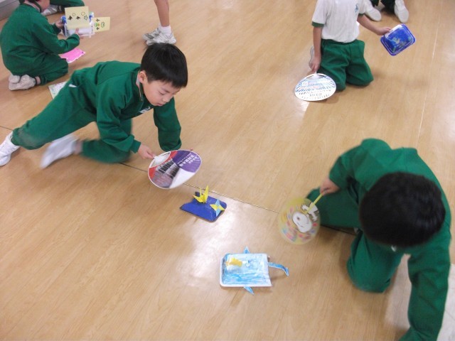 パタパタと風を送って飛ばしたり、友達と競争したりして楽しみました。