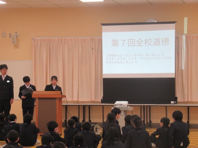 2学期がんばったことを振り返りました!(終業式・全校道徳)12/24