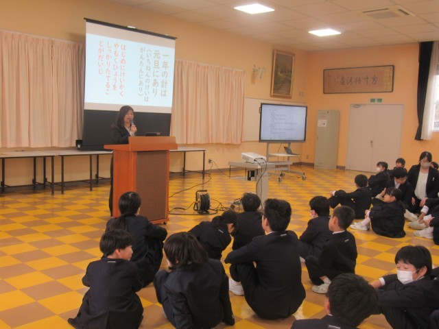 また、校長先生からは「一年の計は元旦にあり」について話がありました。子供たちには、2学期の頑張ったことをもとに、3学期は自分の目標に向かってさらにレベルアップしてほしいです。