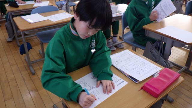 理科の時間です。授業の初めに「電気が流れる道のことを・・・?」「回路!」と確認して、これまでの学習をプリントで確かめました。