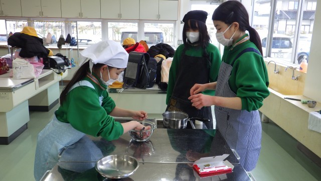 卒業前の思い出づくりとして、みんなで簡単なお菓子作りをしました。
