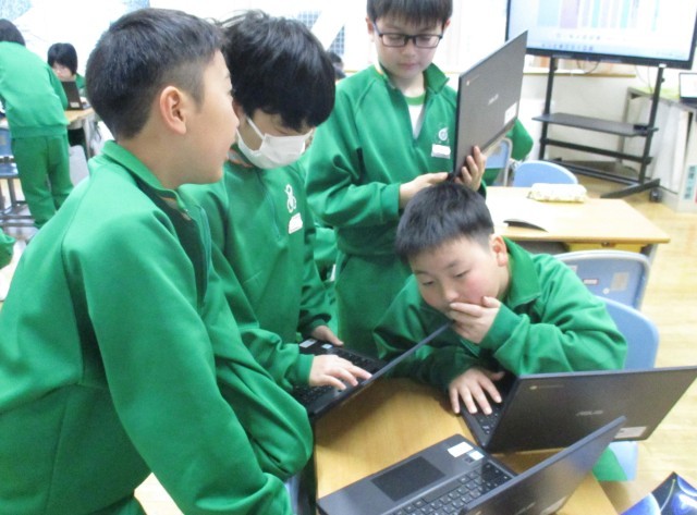 「5年生で学ぶこと」と「4年生で学んだこと」を整理して、これから始まる国語科の学習の見通しを立てています。これからの学習で、4年生で身に付けたどのような見方・考え方を使って学習を進めるか、確かめられたかな?