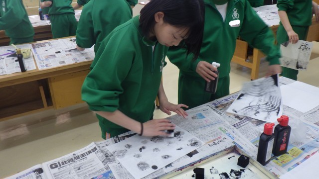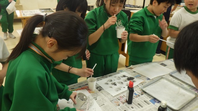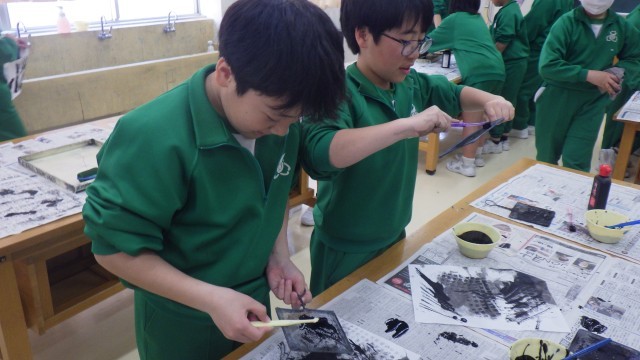 墨で絵を描こう -図画工作科- (6年) 4月16日