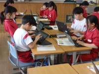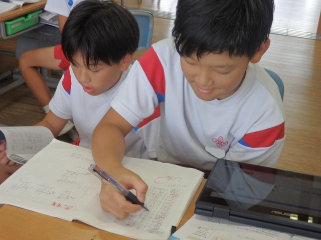 ノートや新しいタブレット端末を使って、わり算の練習問題に挑戦しました。