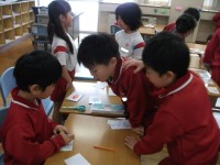 うきうきボックスづくり ー図画工作科ー (1年) 10月27日 公開日 2025/10/27 更新日 2025/10/27 1年生 紙の箱を飾って、箱を楽しく変身させます。飾り方を工夫したり、箱の形を生かした飾り方を考えたりできたかな?