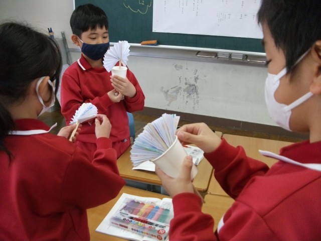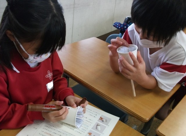 教科書の文を読んで、紙コップ花火をつくりました。どの言葉や文に気を付けてつくりましたか?