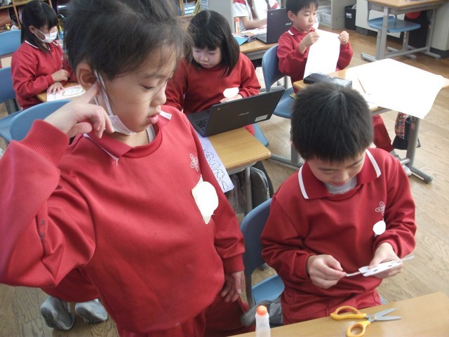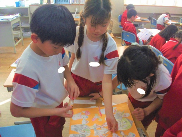 クラスのみんなが楽しめる掲示やイベントにするために、同じチームの友達と意見を出し合いながら活動しています。