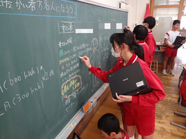 家庭科の学習で冬を暖かく過ごすための生活の工夫について学習しています。
