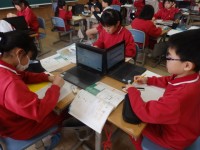 学年みんなで役割を分担して、6年生へのプレゼントづくりをしています。一つ一つ、心を込めて仕上げます。