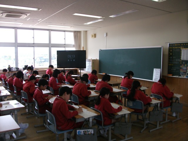 本日、明日は学力調査を行います。今日は、国語と理科。昨年度までの学習の力試しです。みんな集中して取り組んでいました。