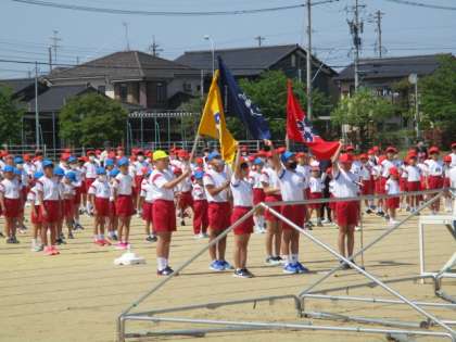 開閉会式の練習をしました。明日は予行。今日よりもっと暑くなりそうです!