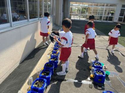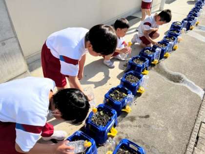 「あさがおさん、きれいにさいてね!」(1年生)5月18日