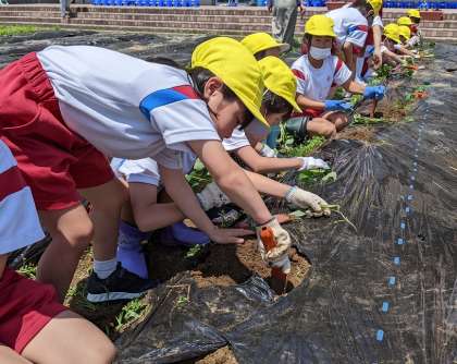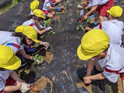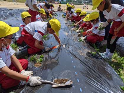 2年生は、今週からサツマイモ(紅はるか)を植えています。