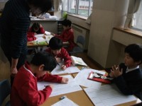 1年生の子供たちが、入室前に事前指導を受けていました。