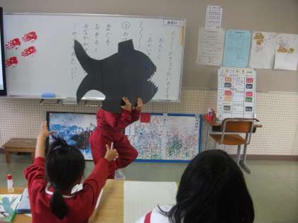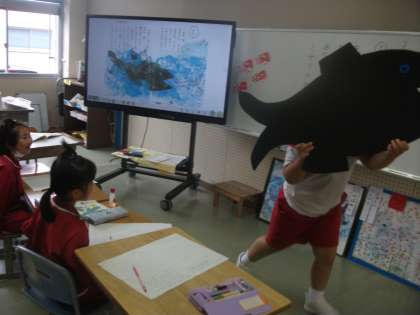 特別支援 すごい速さのまぐろ(6月16日) 公開日 2023/06/16 更新日 2023/06/16 特別支援 2年生の国語の授業では、スイミーのまぐろの場面を読みました。すごい速さのまぐろを表現するために、素早い動作で演じていました。