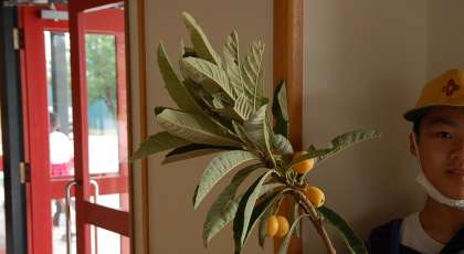 アズマダチのあいさつ(6月19日) 公開日 2023/06/19 更新日 2023/06/19 全校 暑い季節となっています。子供たちは、今日も元気いっぱいに登校しました。 地域の方から「びわ」の枝をいただきました。子供たちは、とてもうれしそうです。ありがとうございました。