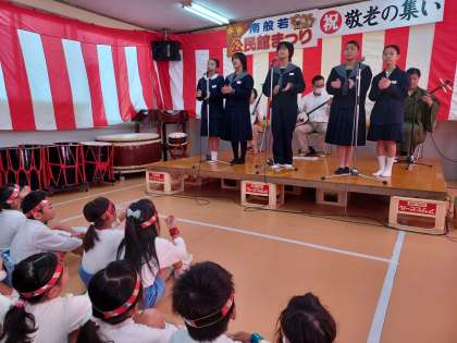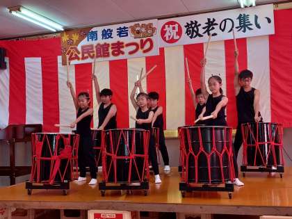 敬老の集いでは、民謡や太鼓の発表があり、堂々とした演技で感心しました。