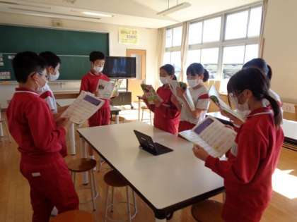 「グループで3部合唱に挑戦しよう!」(6年生)11月9日 公開日 2023/11/09 更新日 2023/11/09 6年生 音楽の時間に、「星の世界」の三部合唱に挑戦しています。最初は、パートごとに分かれて練習をしていましたが、最近では、互いの音を聞き合って歌えるようになってきました。動画を撮って自分たちの歌声を確かめながら練習しています。