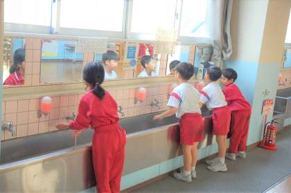 最後に、容器を洗って持ち帰る子供もいます。