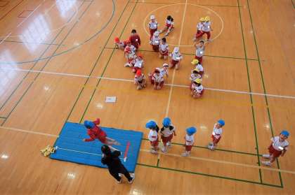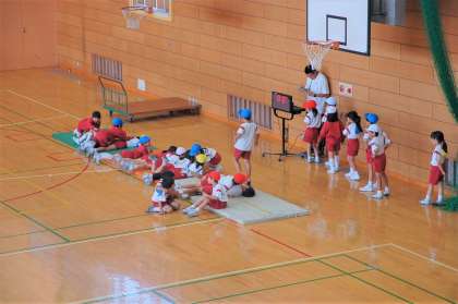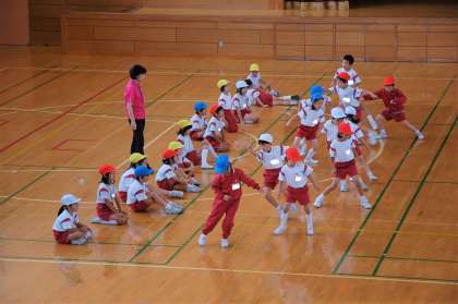 立ち幅跳び、反復横跳び、上体起こし等を測定しています。
