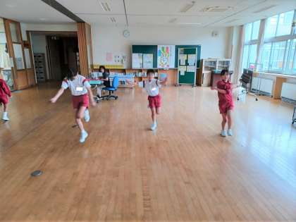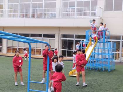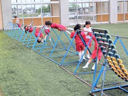 中庭では、6年生と遊んだり、鉄棒の練習をしたりと1年生が楽しそうです。