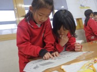 長休みに、1年生が学校中で先生たちにインタビューを行っています。